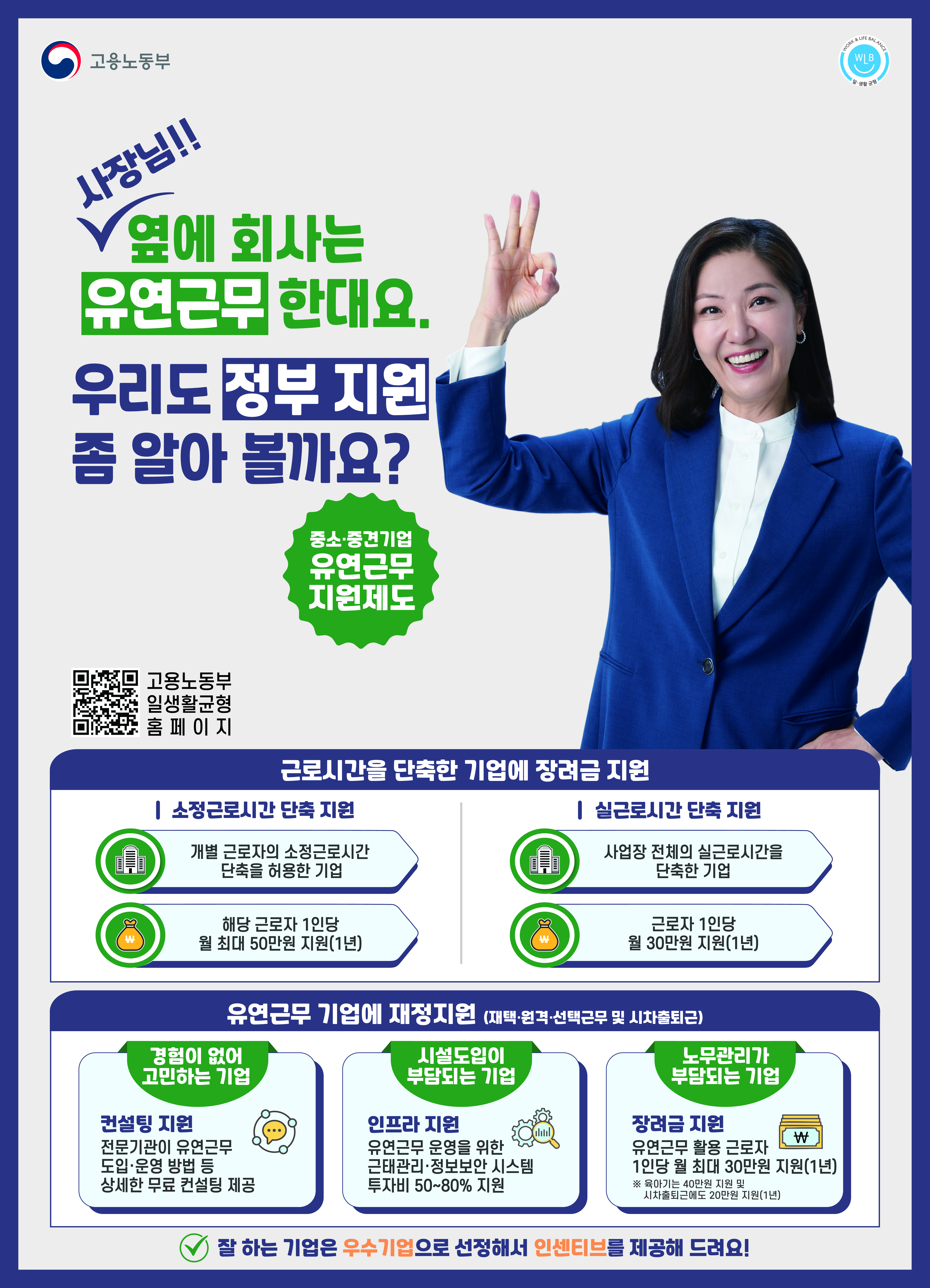 유연근무 지원제도 홍보 포스터(장려금 지원, 재정지원 등 포함)
